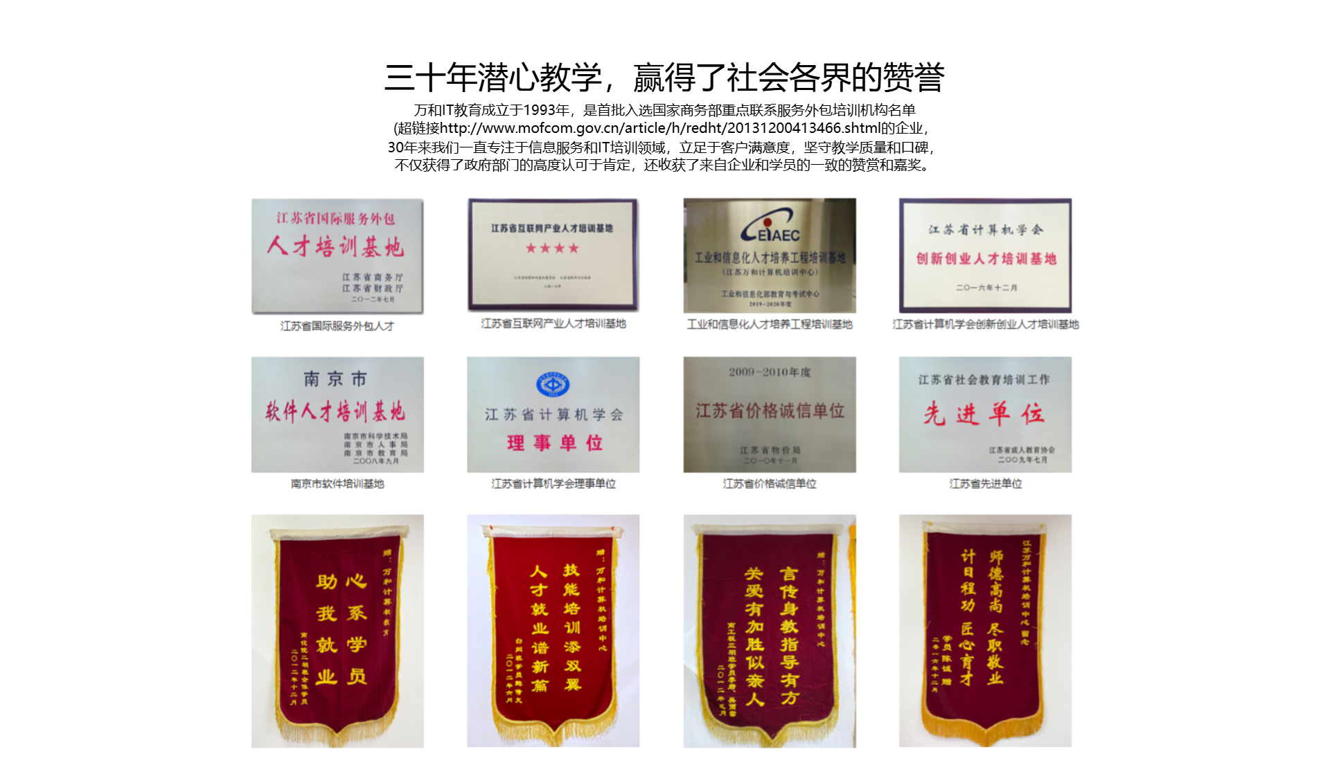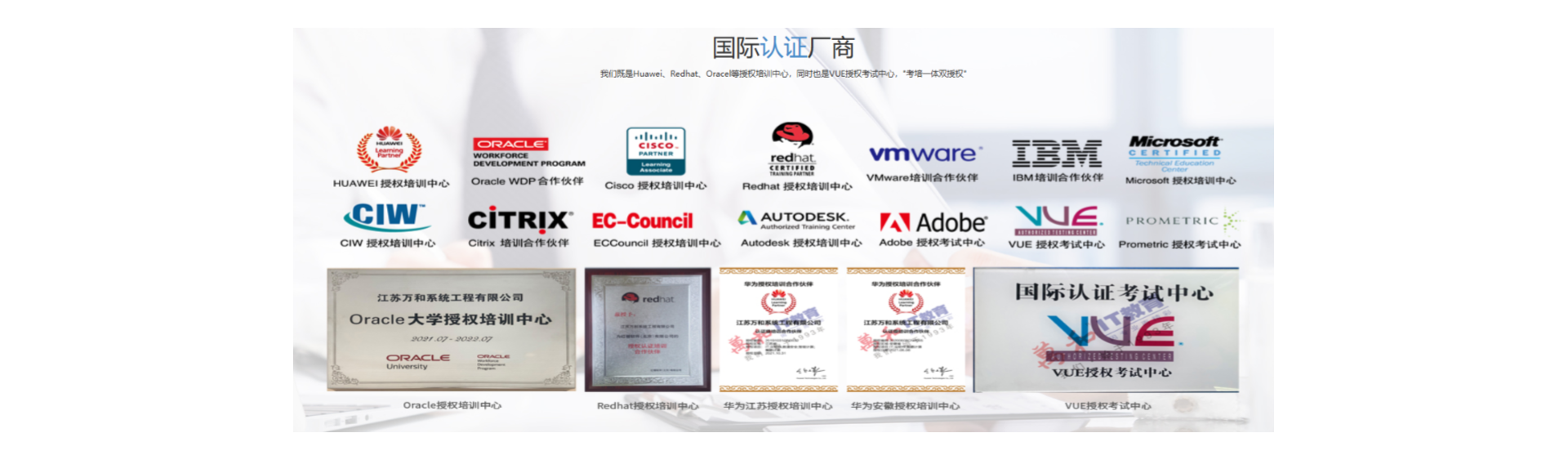 南京万和创办于1993 年,自创办之日起我们就专注于信息服务和培训领域。面向个人提供技能提升、认证和就业服务(2C);面向高校提供专业共建、实验室建设、实习(实训)服务(2B);面向企业提供员工内训、人才服务、项目外包和研发服务(2B)。涵盖的技术领域包括网络技术、开发技术、数据库技术、信息安全、虚拟化技术、云计算、人工智能及大数据应用等。客户覆盖政府、金融、电信、能源、制造、科研等众多行业,涉及软件开发、IT 服务、培训、咨询等多个业务领域,获得了广泛的客户认可!