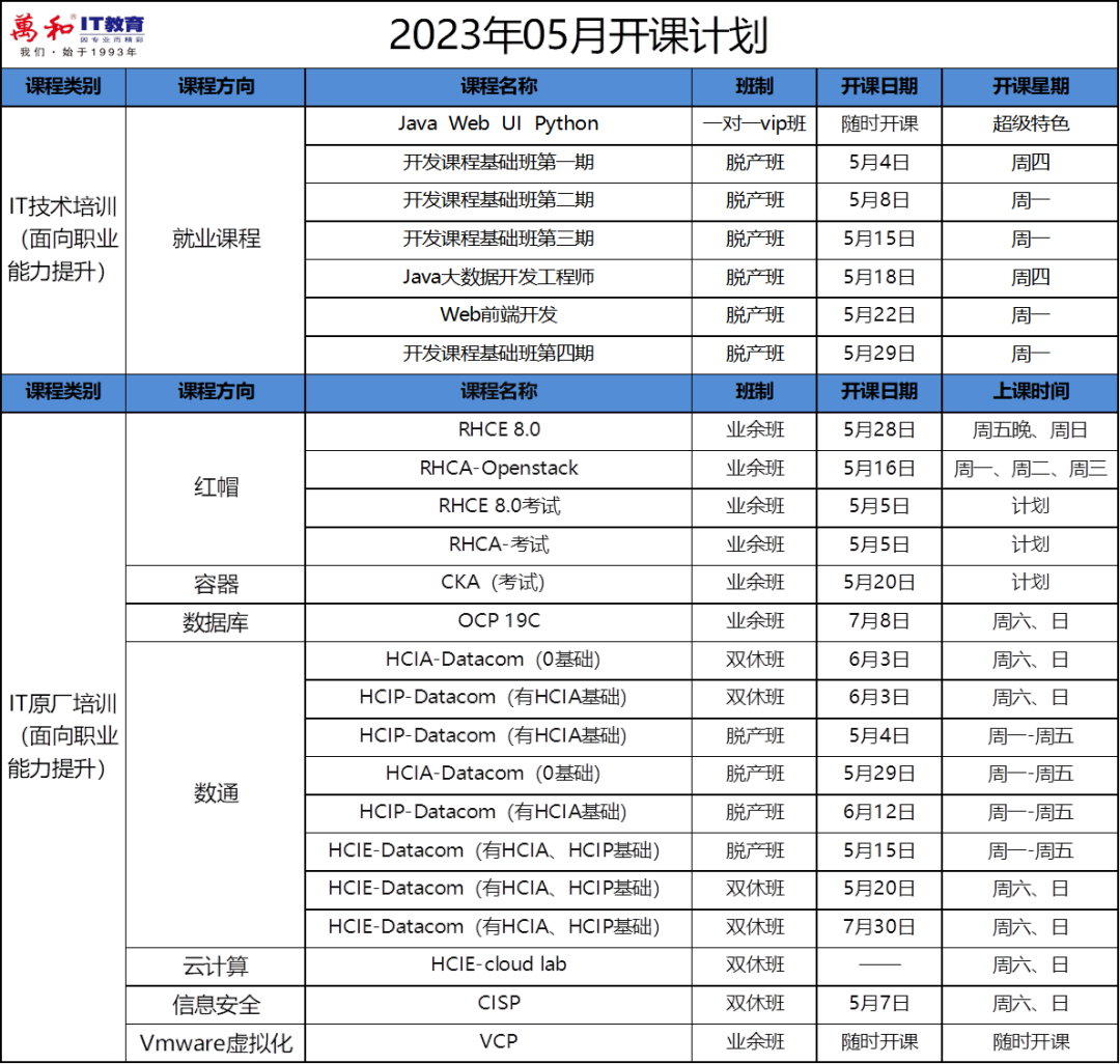 万和IT教育5月开班计划请查收