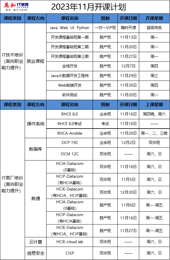 为梦奋战,万和IT教育11月开课计划来啦~