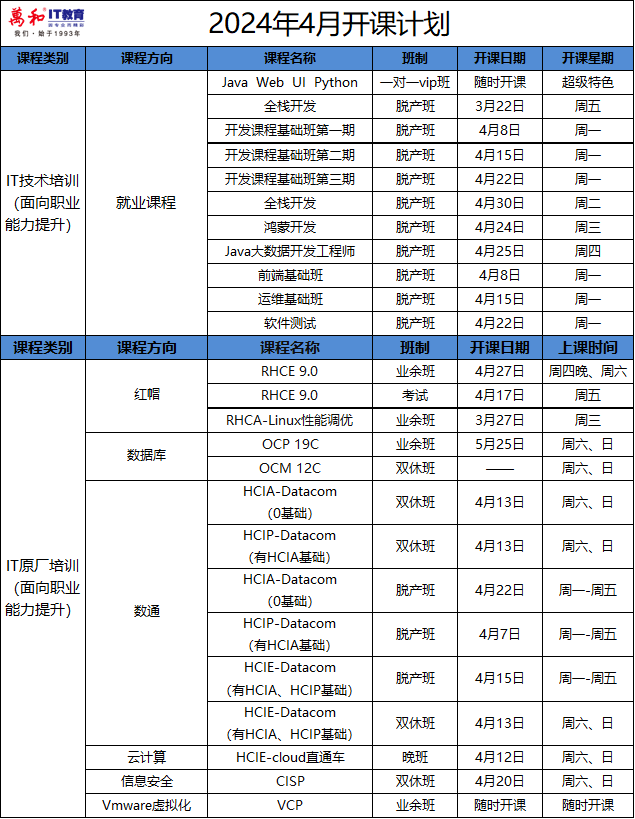 随着信息技术的飞速发展,IT行业已经成为了当今社会最具活力和前景的产业之一。为了满足广大同学的学习需求,我们推出了4月开课计划,旨在为广大学员提供高质量的教育资源,助力实现职业梦想。